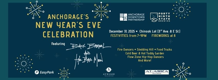 Anchorage Downtown Partnership (ADP) invites the community to ring in 2026 at Downtown Anchorage’s signature New Year’s Eve Celebration, featuring a headlining performance by Black Barrel and the Bad Men.