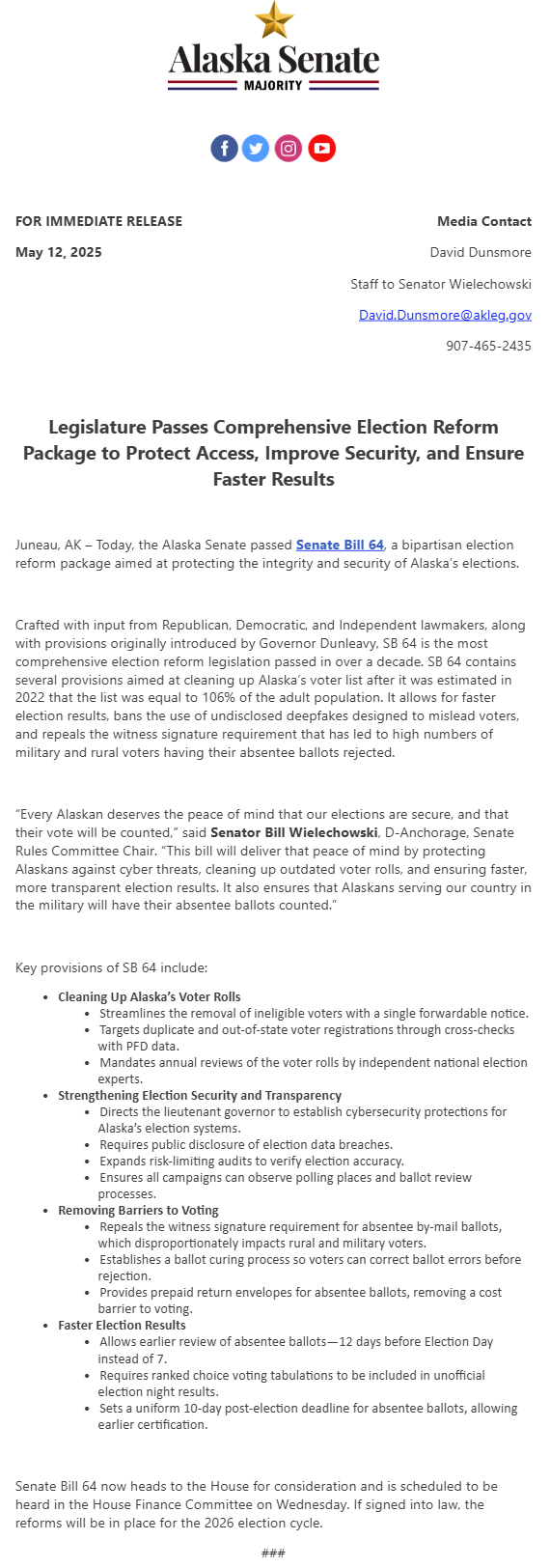 (My comment: Governor Dunleavy is hurrying to catch up with the Legislature. If he really cared about our state, he would have proposed a balance budget in December 2024, would have been present in Juneau during the session, and would have agreed to meet with us. He’s done none of this. Now he makes sure that the Legislature and his own administration can’t function; a failed legacy of leadership.)